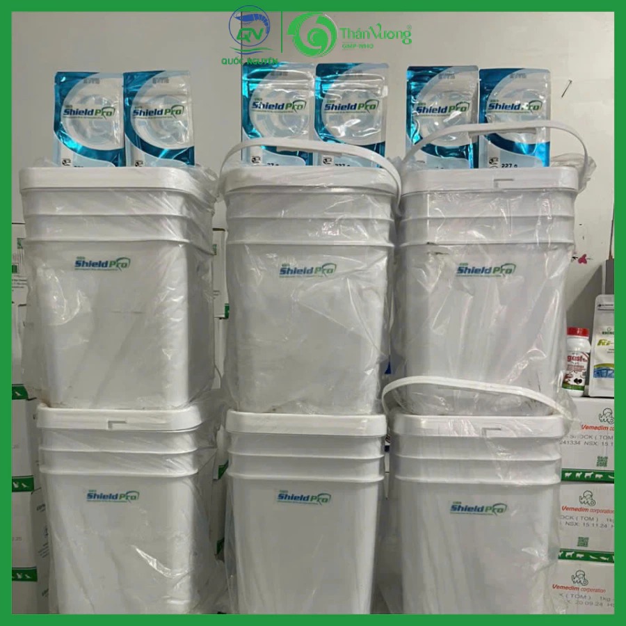 - Hòa 1 gói SHIELD PRO với 3–5 kg mật rỉ đường (hoặc đường cát) và 40 lít nước sạch.